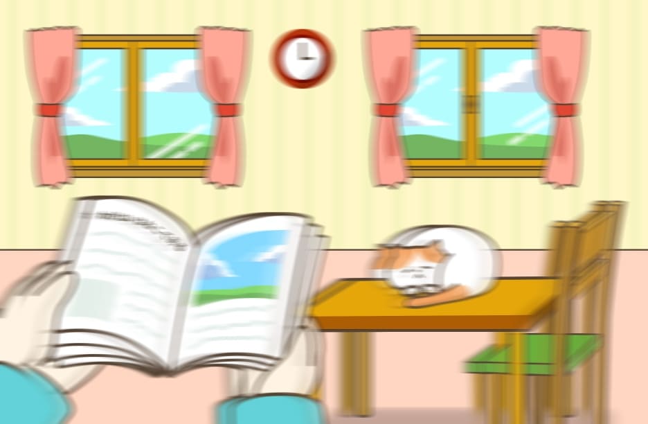 遠とおくも近ちかくも、ピントを合あわせる努力どりょくをしないと見みえづらい状態じょうたいです。そのため、本ほんやノートなどがぼやけて見みえたり、長ながい時間じかんものを見みると目めがつかれやすくなることがあります。