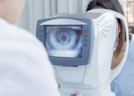 初めに使用用途・頻度をヒアリングし、データ測定・視力検査・ドライアイのチェックを行い、診察にて目の状態をチェックします。